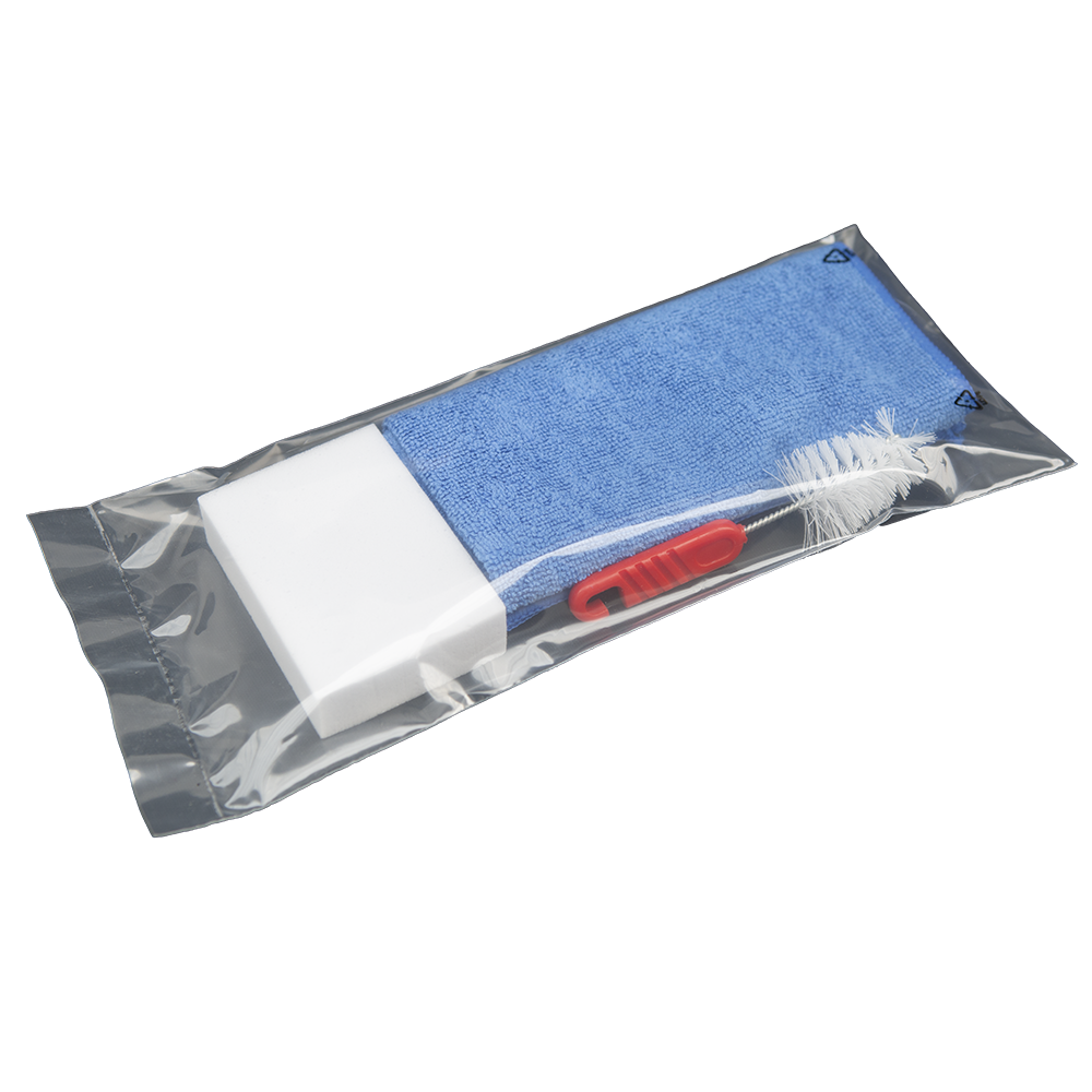 Kit pulizia: panno in microfibra e spugna magica.