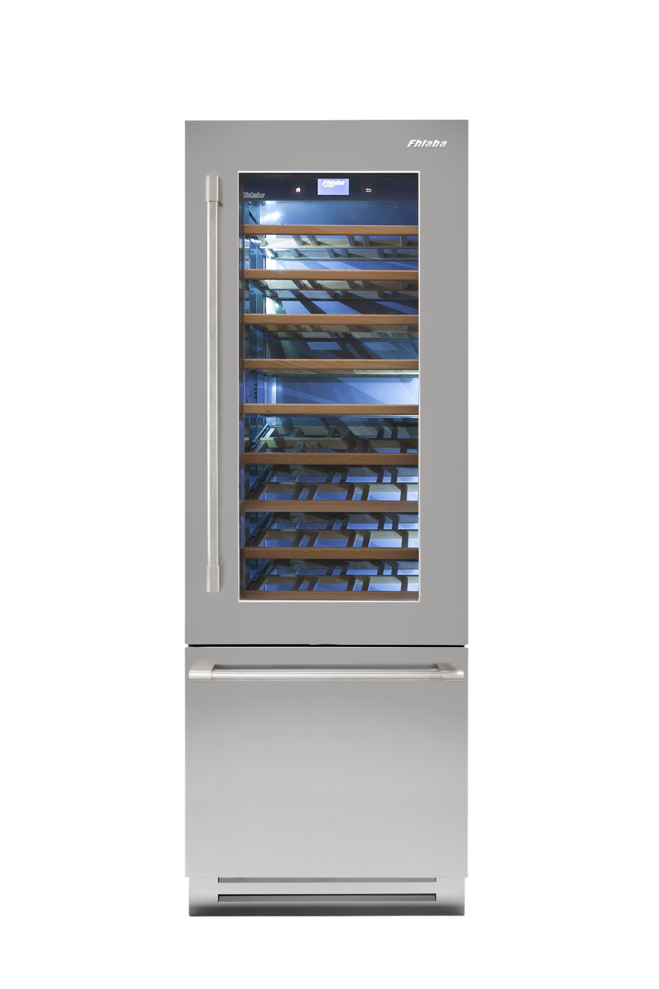 Le porte in vetro brunito Fhiaba hanno tre strati per filtrare i raggi UV e proteggere le bottiglie di vino dai epentini cambiamenti di temperatura e umidità dell'ambiente esterno.