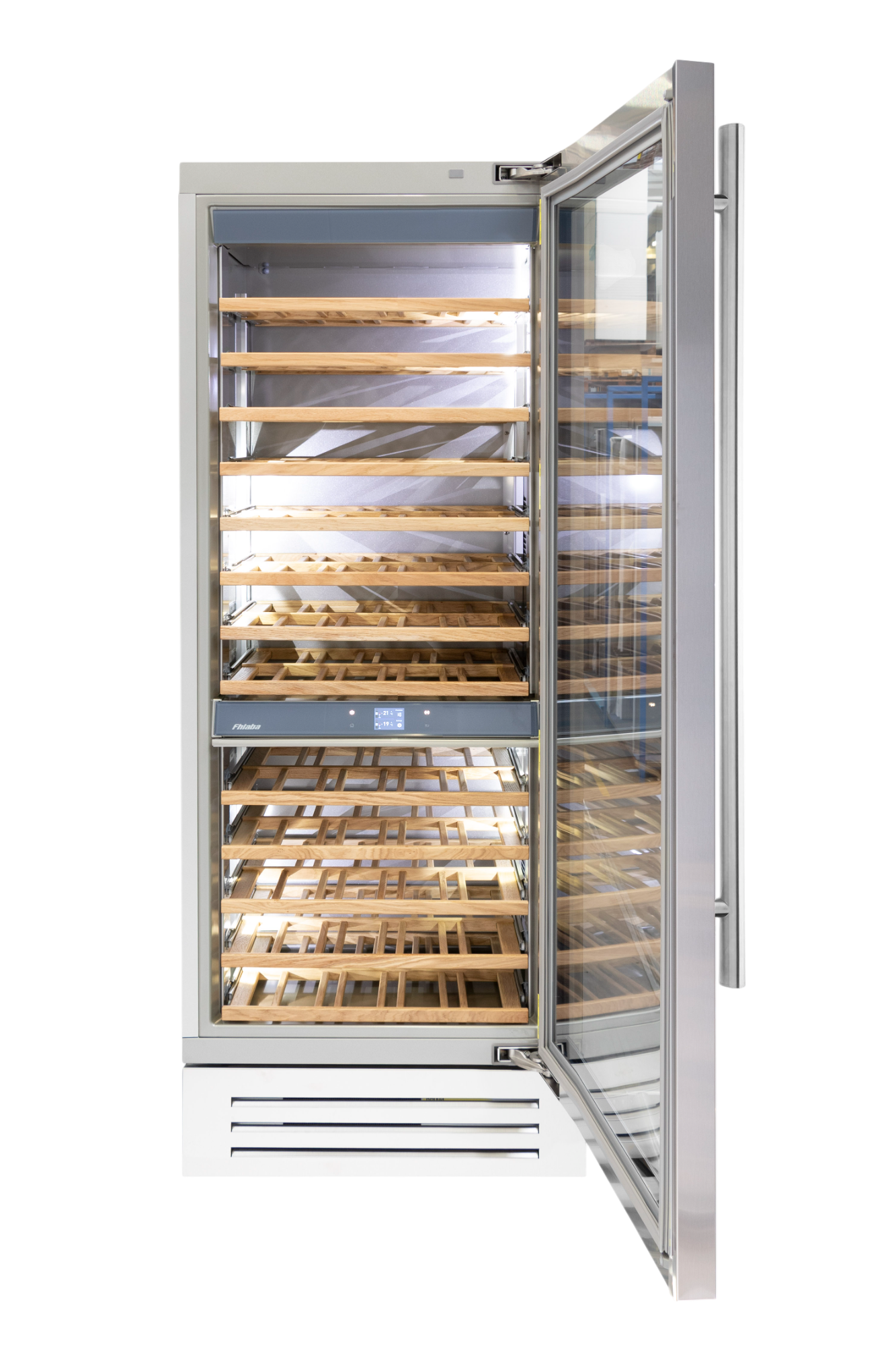 Le cantine vini Fhiaba sono dotate di pregiati ripiani in legno noce canaletto realizzati da artigiani friulani. Sfruttano ogni minimo spazio del vano e accolgono bottiglie con diverse dimensioni e sono completamente estraibili e dotati di chiusura soft per ridurre le vibrazioni.