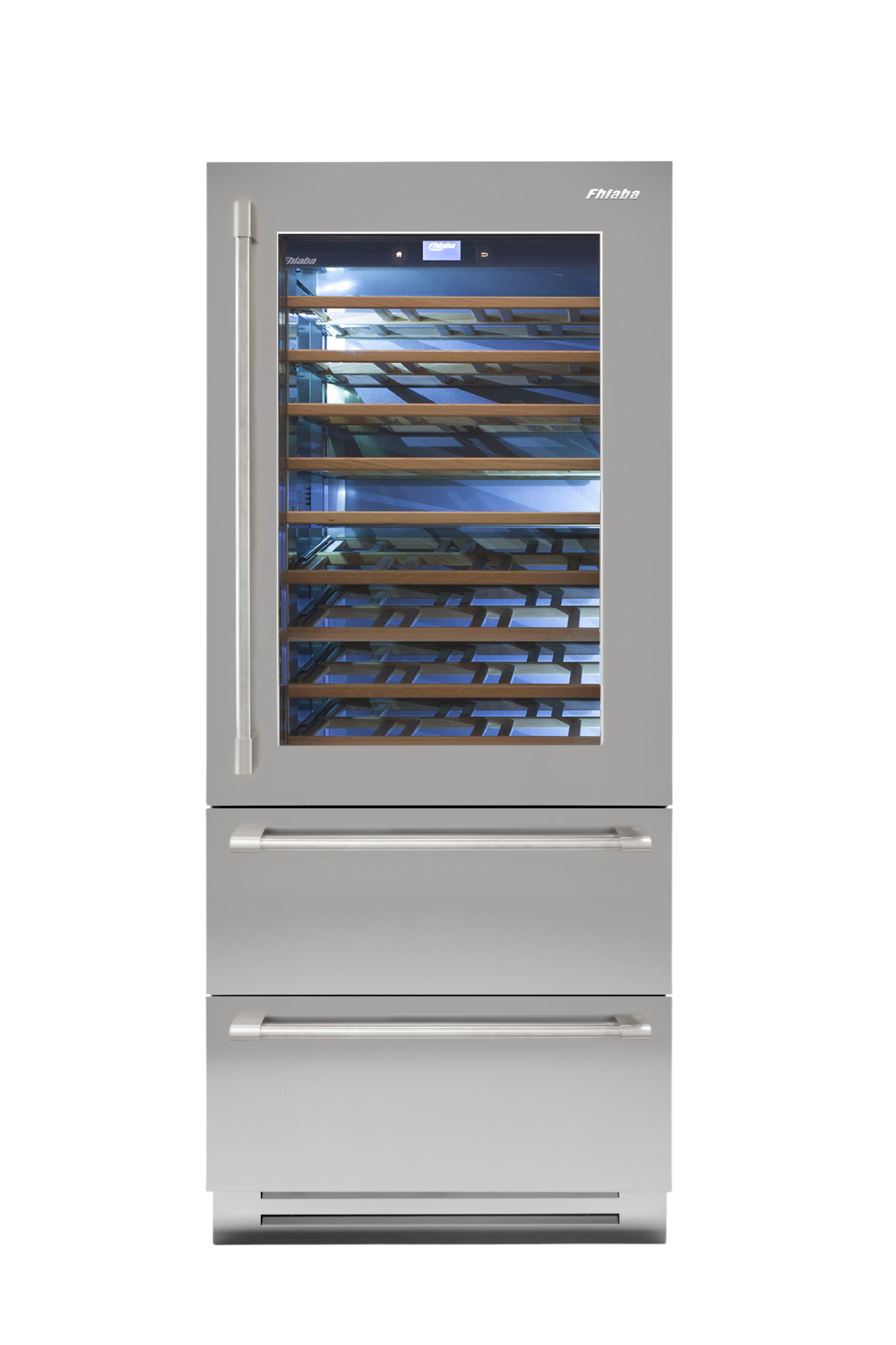 Le porte in vetro brunito Fhiaba hanno tre strati per filtrare i raggi UV e proteggere le bottiglie di vino dai epentini cambiamenti di temperatura e umidità dell'ambiente esterno.