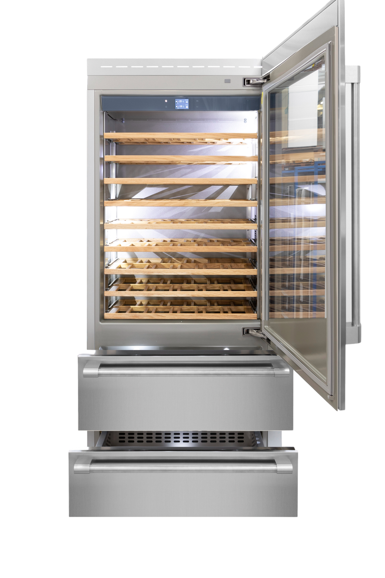 Anti-Vibrazioni: Protezione dalle vibrazioni garantita dall’isolamento dei compressori e dai dispositivi di chiusura soft montati su tutti i ripiani di alloggiamento delle bottiglie