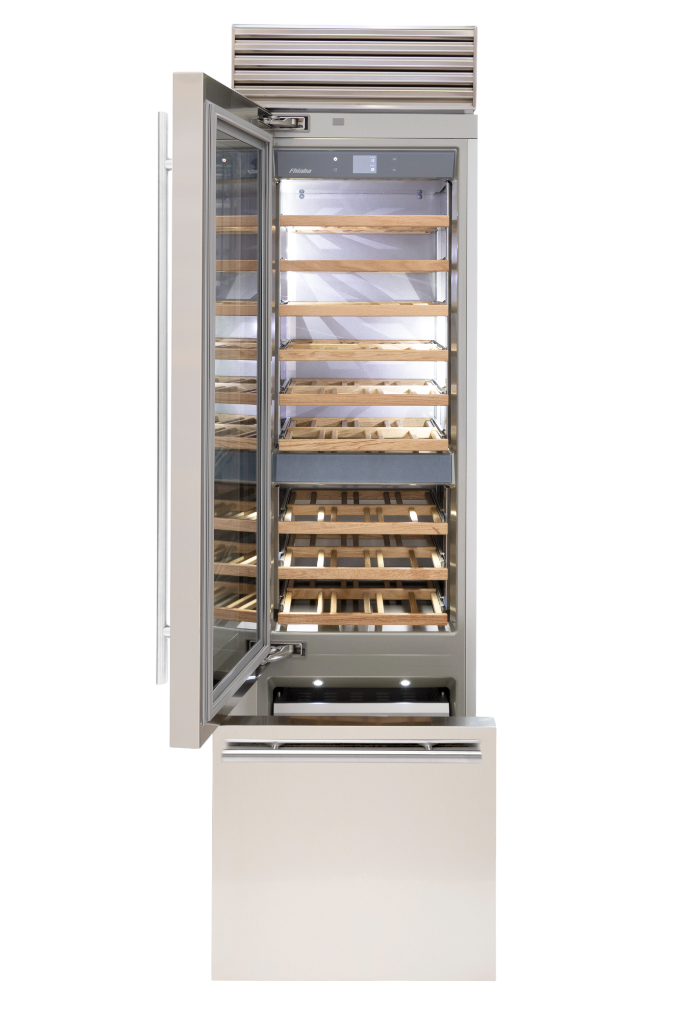 Le cantine vini Fhiaba sono dotate di pregiati ripiani in legno noce canaletto realizzati da artigiani friulani. Sfruttano ogni minimo spazio del vano e accolgono bottiglie con diverse dimensioni e sono completamente estraibili e dotati di chiusura soft per ridurre le vibrazioni.