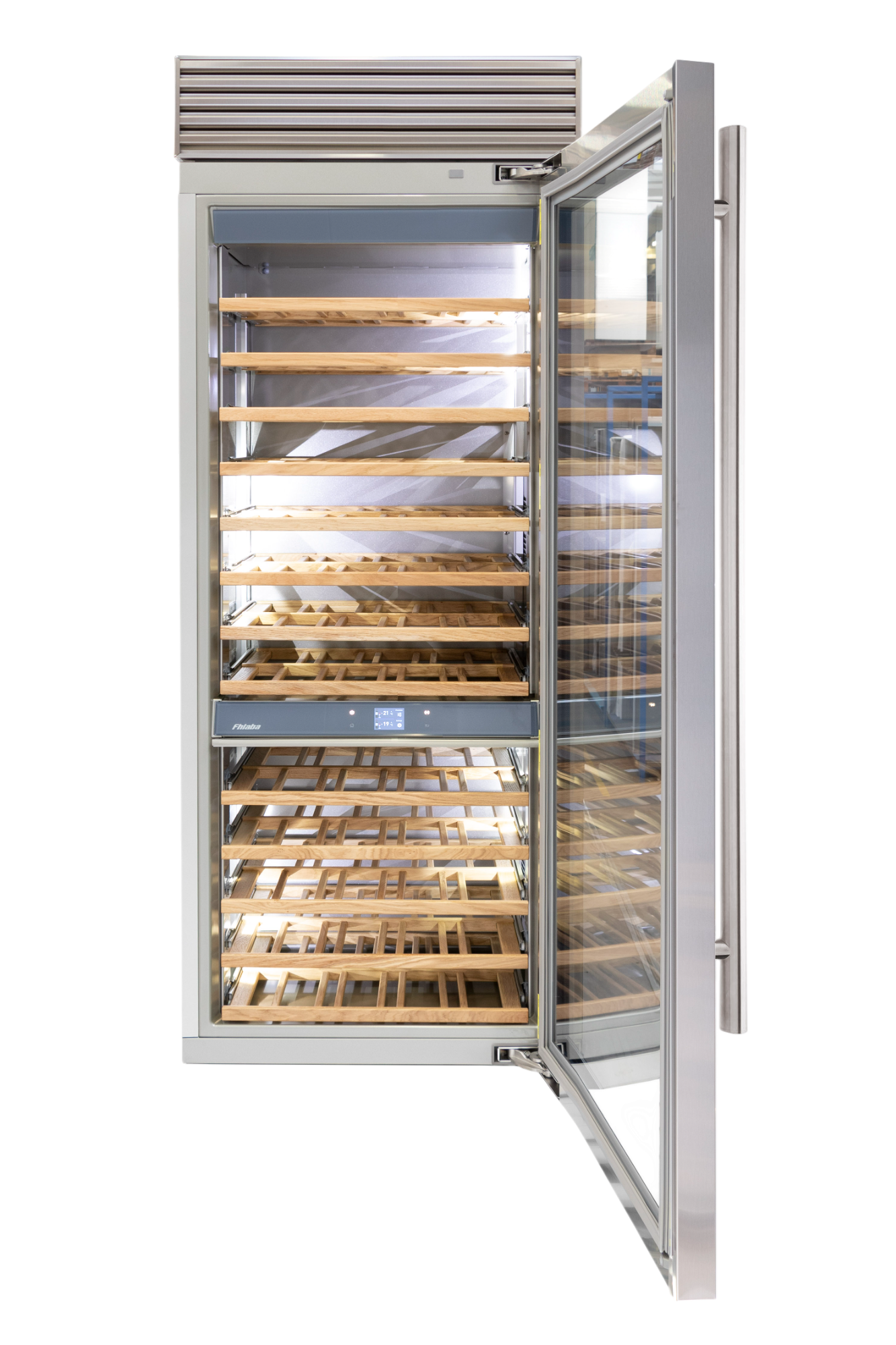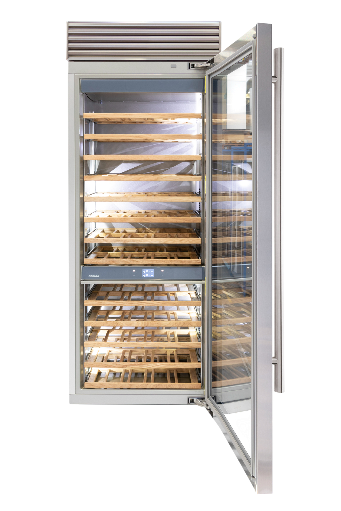 Le cantine vini Fhiaba sono dotate di pregiati ripiani in legno noce canaletto realizzati da artigiani friulani. Sfruttano ogni minimo spazio del vano e accolgono bottiglie con diverse dimensioni e sono completamente estraibili e dotati di chiusura soft per ridurre le vibrazioni.