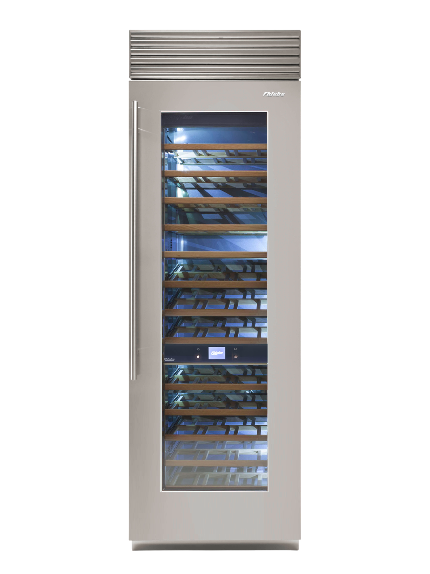 Le porte in vetro brunito Fhiaba hanno tre strati per filtrare i raggi UV e proteggere le bottiglie di vino dai epentini cambiamenti di temperatura e umidità dell'ambiente esterno.