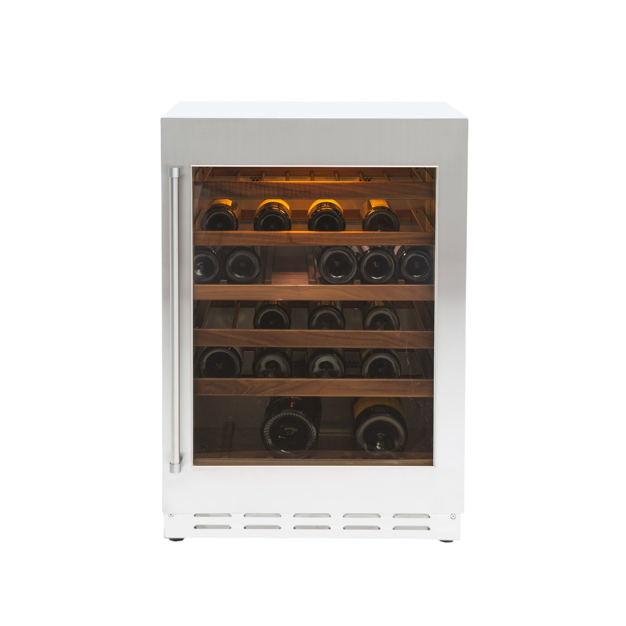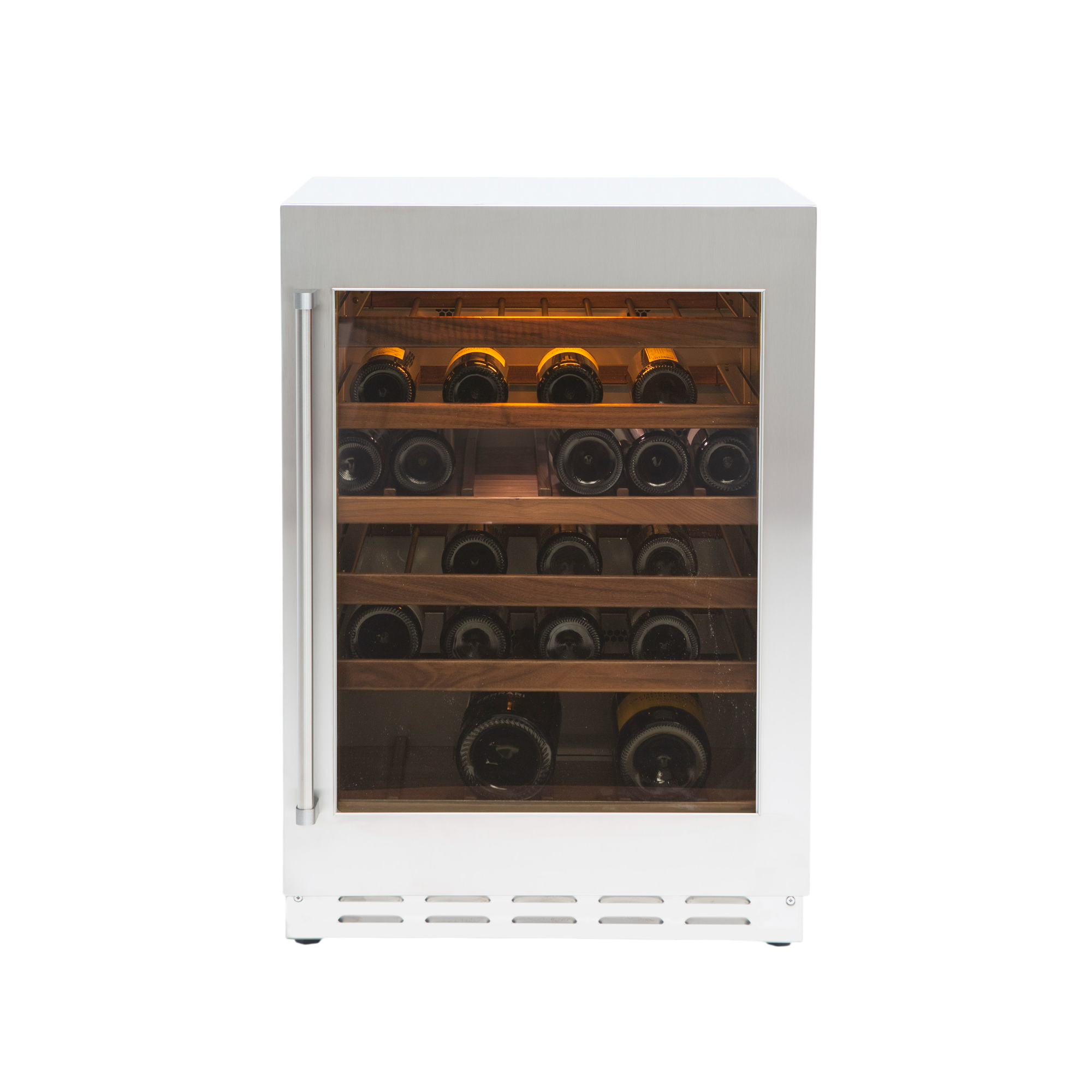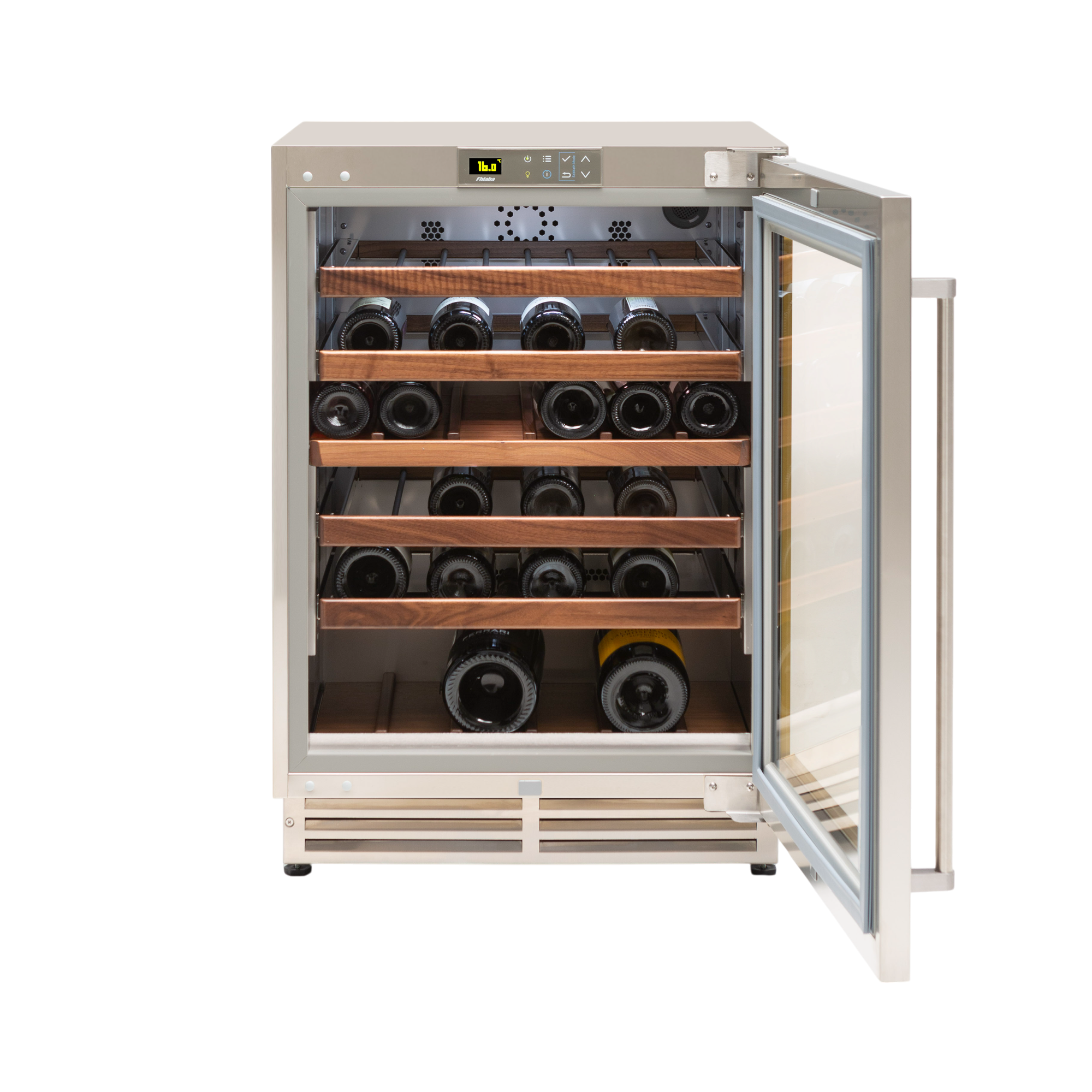 Il vano interno del modello beverage e della cantina vini può essere allestito in base alla realenecessità di conservazione. Sono disponibili ripiani in legno di noce canaletto per la collocazione delle bottiglie di vino e ripiani di vetro temperato con frontale in alluminio per posizionare bottiglie e lattine.