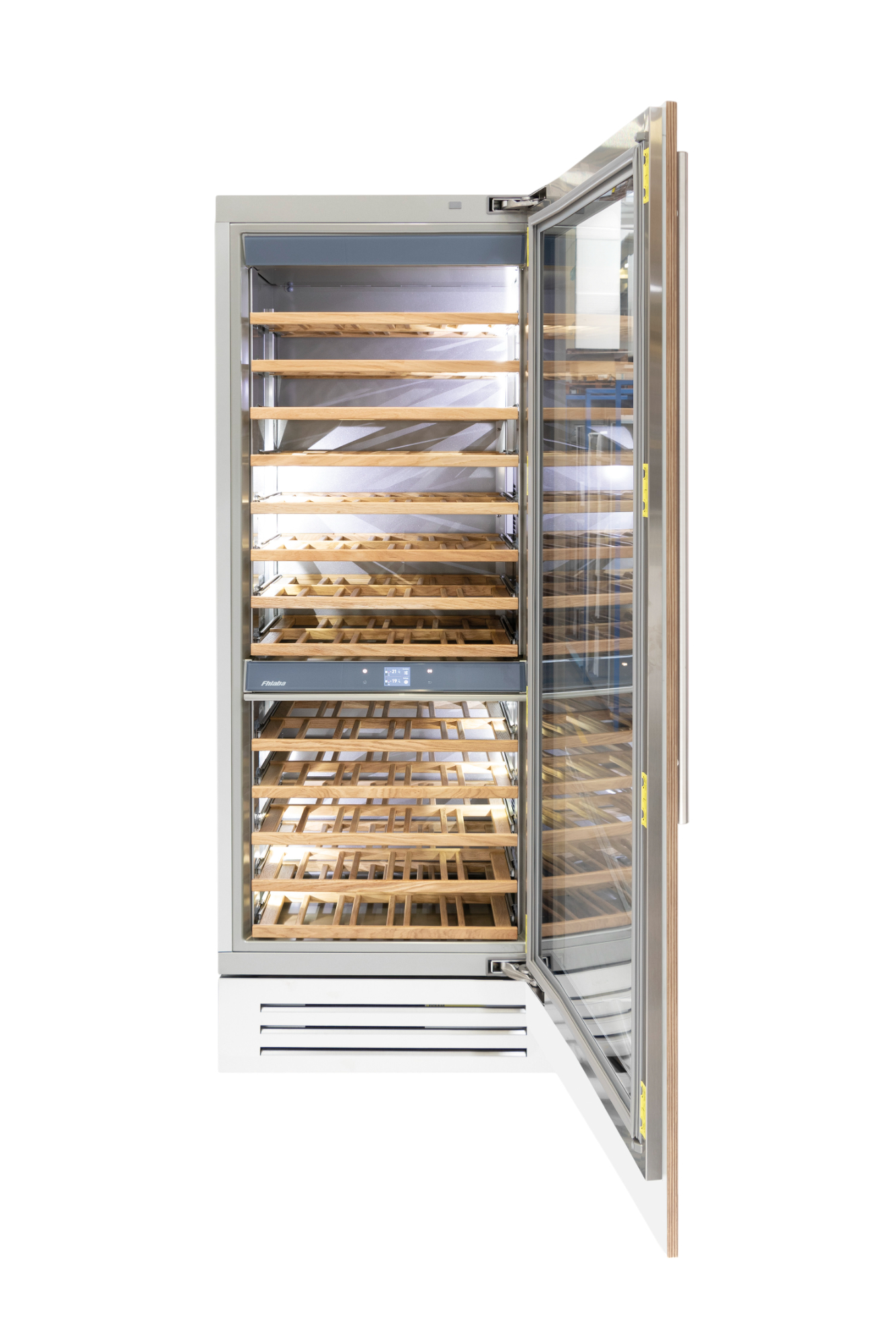 Le cantine vini Fhiaba sono dotate di pregiati ripiani in legno noce canaletto realizzati da artigiani friulani. Sfruttano ogni minimo spazio del vano e accolgono bottiglie con diverse dimensioni e sono completamente estraibili e dotati di chiusura soft per ridurre le vibrazioni.