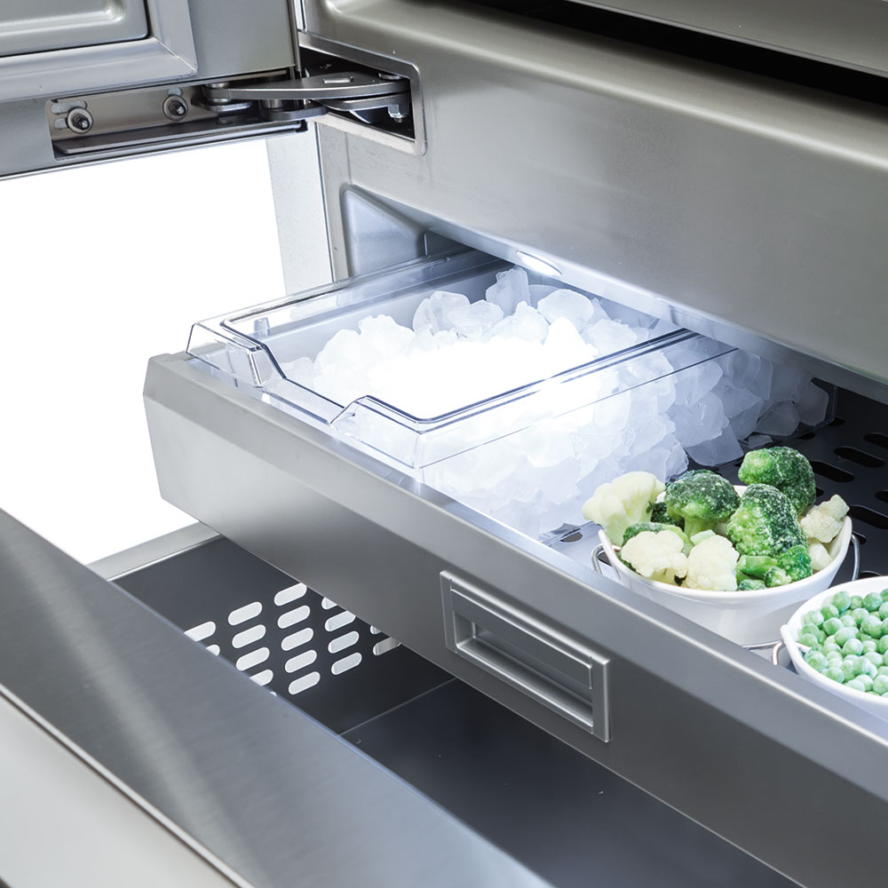 L'ice maker automatico di Fhiaba produce fino 1,5 kg di ghiaccio al giorno nella dimensione e nella quantità desiderata. Il ghiaccio erogato è trasparente e privo di sapore grazie all'azione di purificazione del filtro interno che elimina le impurità presenti nell'acqua.