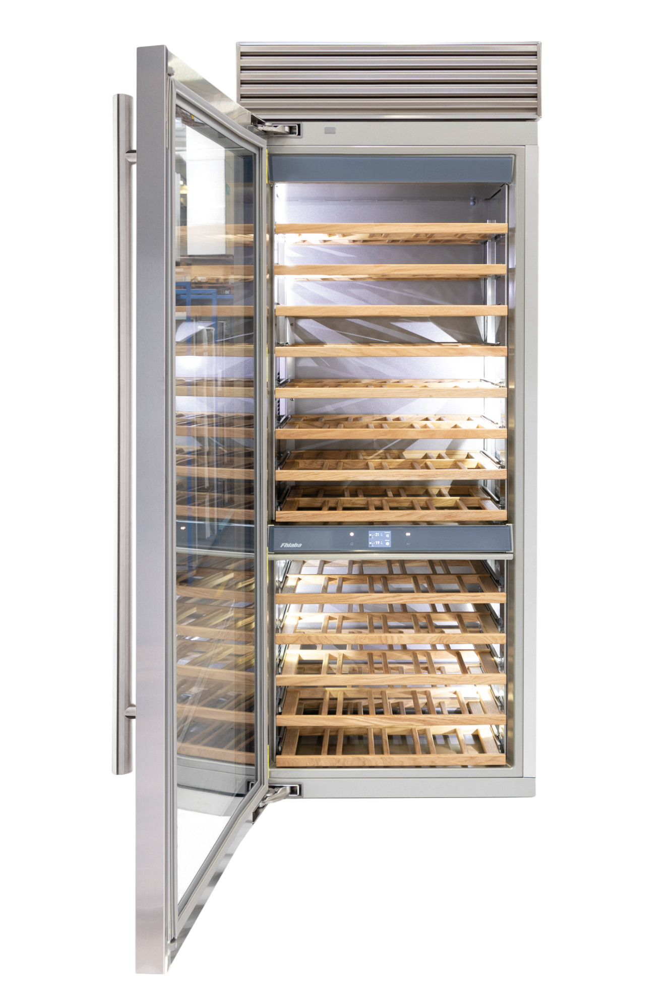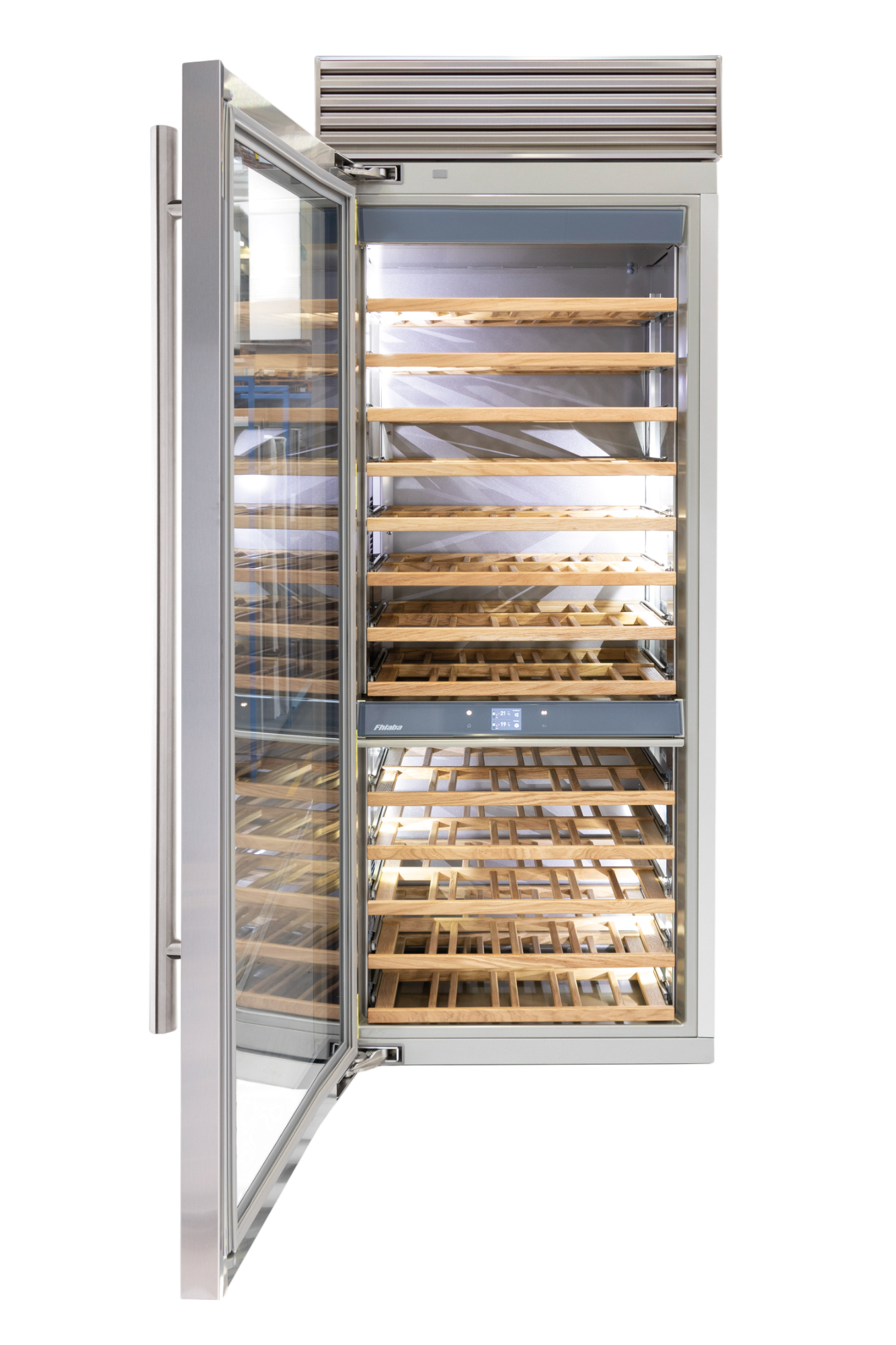 Le cantine vini Fhiaba sono dotate di pregiati ripiani in legno noce canaletto realizzati da artigiani friulani. Sfruttano ogni minimo spazio del vano e accolgono bottiglie con diverse dimensioni e sono completamente estraibili e dotati di chiusura soft per ridurre le vibrazioni.