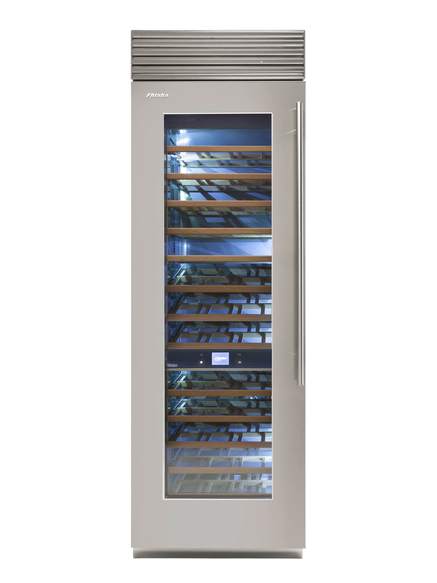 Le porte in vetro brunito Fhiaba hanno tre strati per filtrare i raggi UV e proteggere le bottiglie di vino dai epentini cambiamenti di temperatura e umidità dell'ambiente esterno.