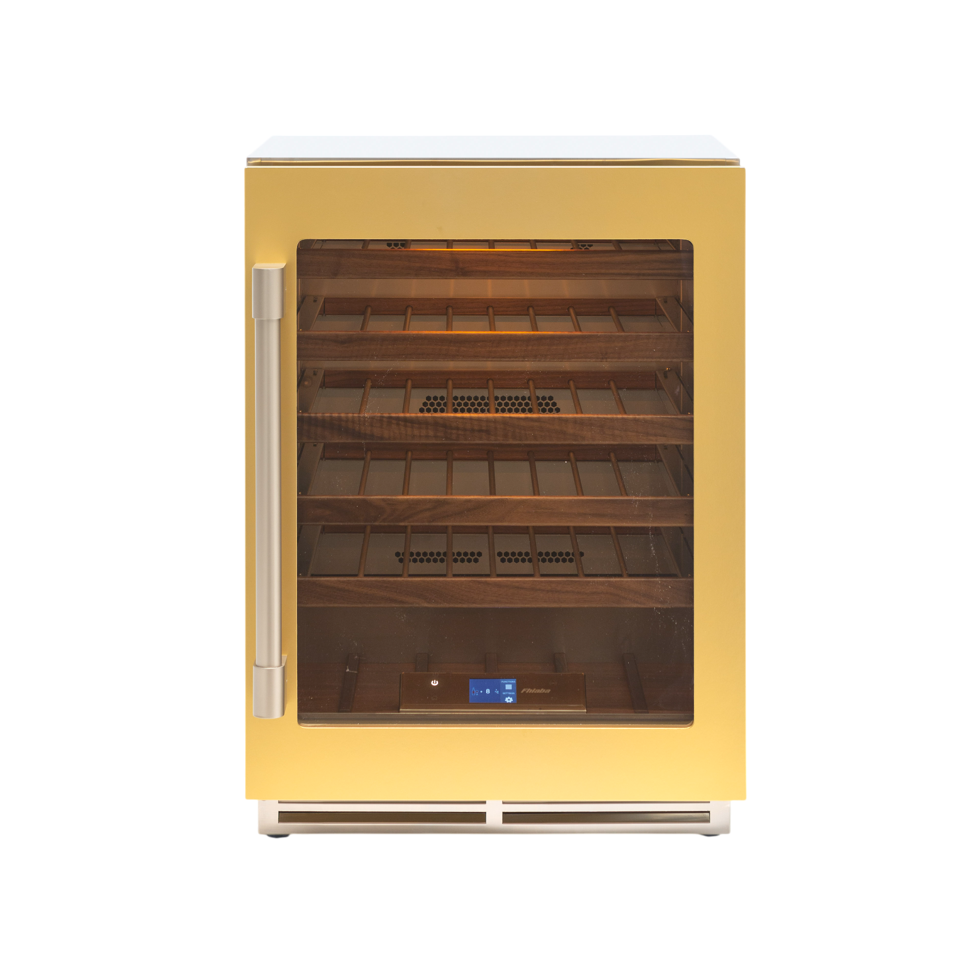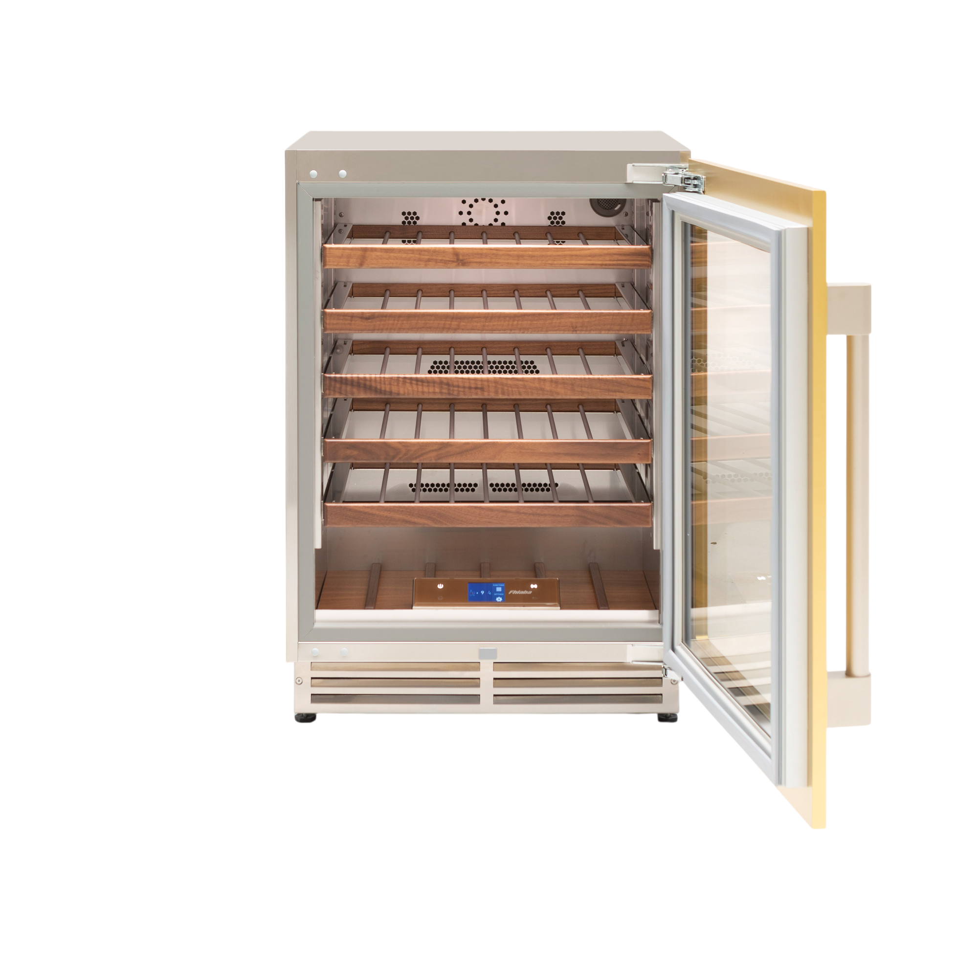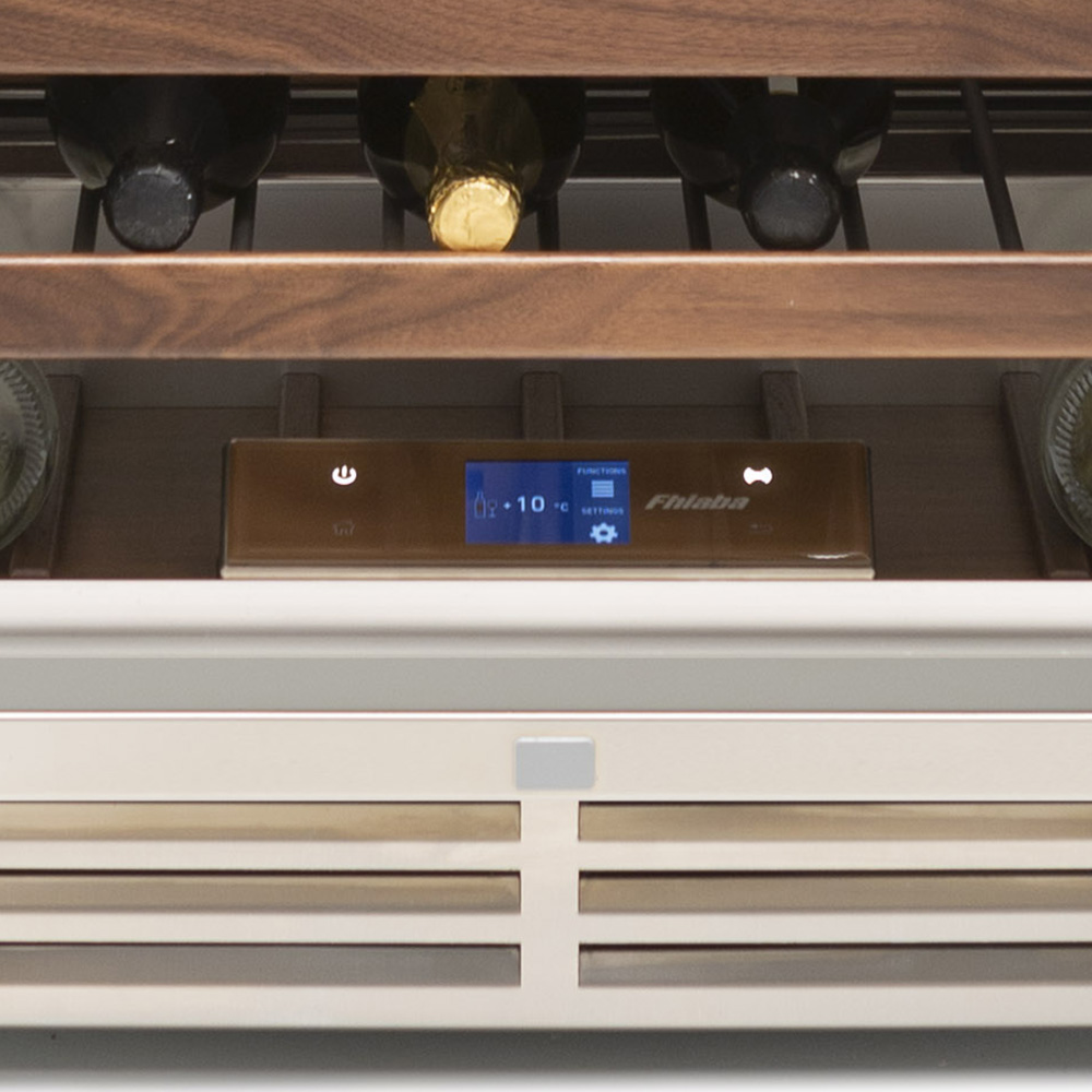 Il vano interno del modello beverage e della cantina vini può essere allestito in base alla realenecessità di conservazione. Sono disponibili ripiani in legno di noce canaletto per la collocazione delle bottiglie di vino e ripiani di vetro temperato con frontale in alluminio per posizionare bottiglie e lattine.