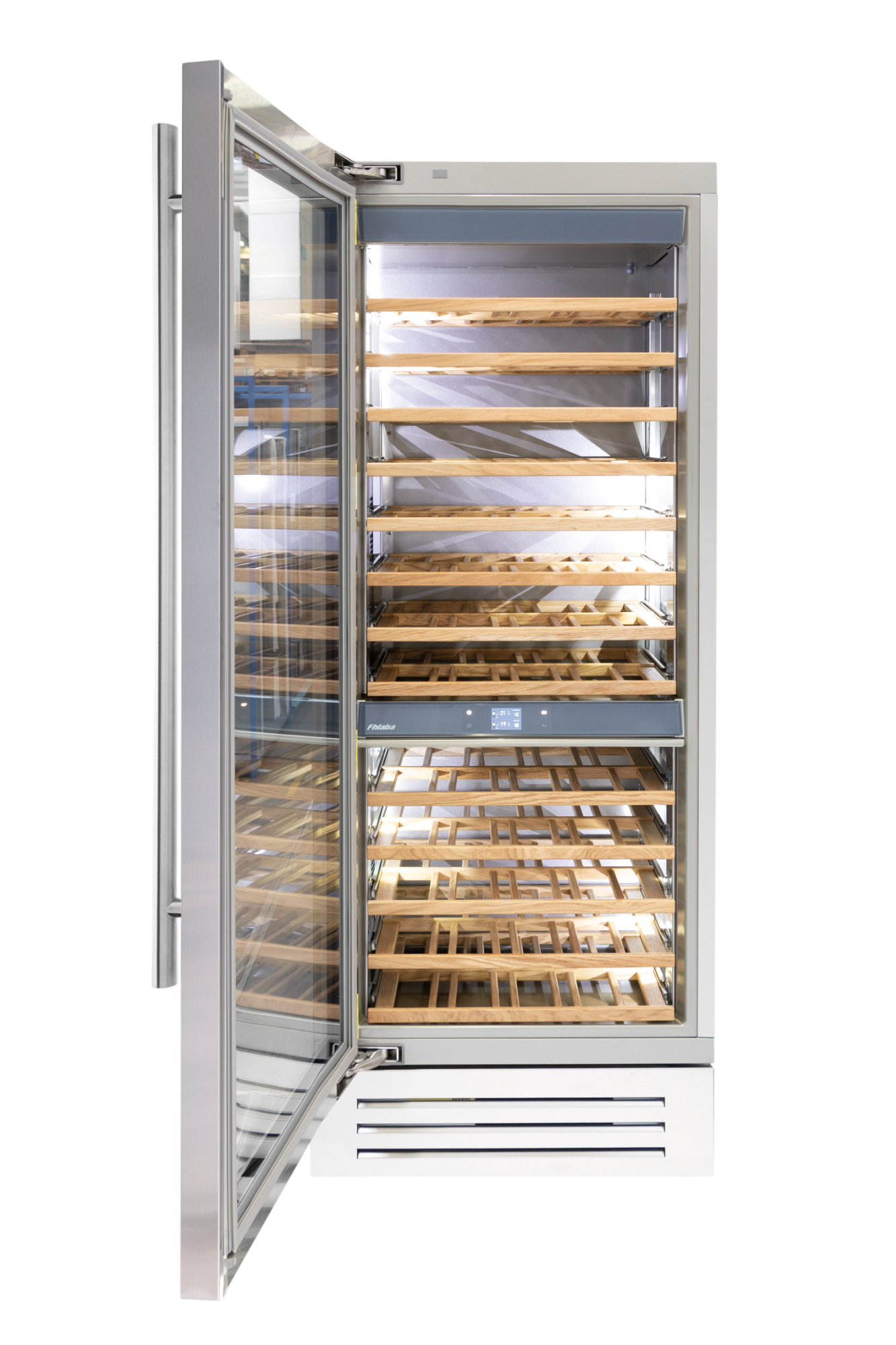 Le cantine vini Fhiaba sono dotate di pregiati ripiani in legno noce canaletto realizzati da artigiani friulani. Sfruttano ogni minimo spazio del vano e accolgono bottiglie con diverse dimensioni e sono completamente estraibili e dotati di chiusura soft per ridurre le vibrazioni.