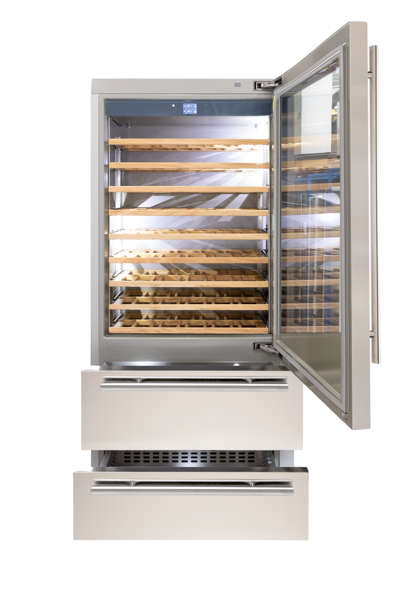 Anti-Vibrazioni: Protezione dalle vibrazioni garantita dall’isolamento dei compressori e dai dispositivi di chiusura soft montati su tutti i ripiani di alloggiamento delle bottiglie