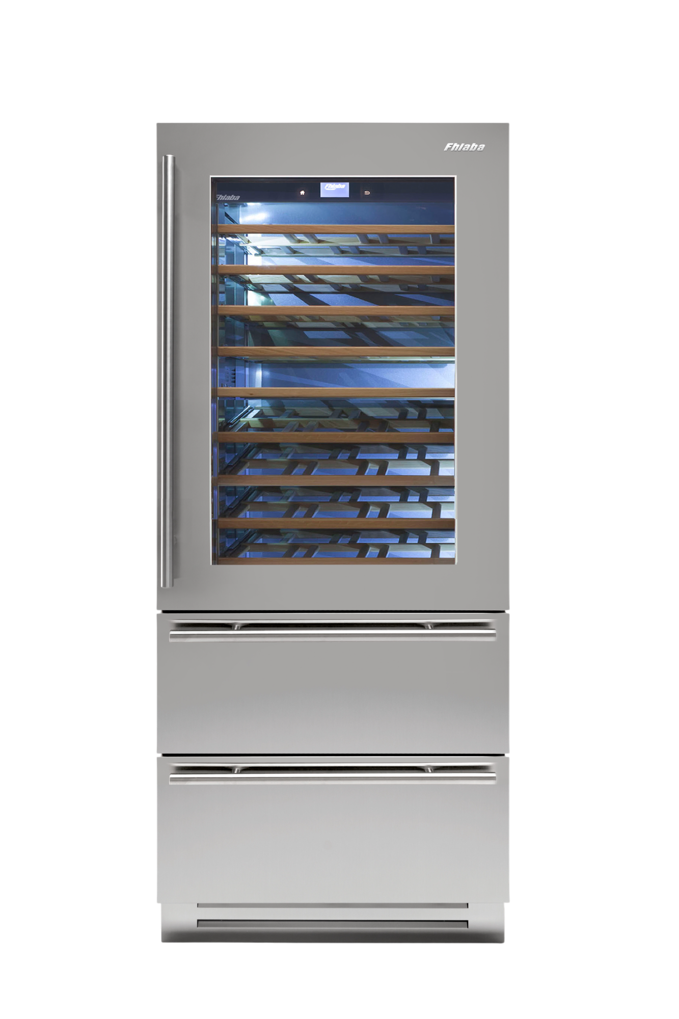 Le cantine vini Fhiaba sono dotate di pregiati ripiani in legno noce canaletto realizzati da artigiani friulani. Sfruttano ogni minimo spazio del vano e accolgono bottiglie con diverse dimensioni e sono completamente estraibili e dotati di chiusura soft per ridurre le vibrazioni.
