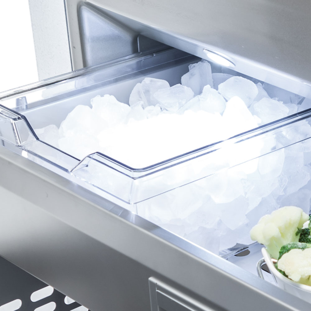 L'ice maker automatico di Fhiaba produce fino 1,5 kg di ghiaccio al giorno nella dimensione e nella quantità desiderata. Il ghiaccio erogato è trasparente e privo di sapore grazie all'azione di purificazione del filtro interno che elimina le impurità presenti nell'acqua