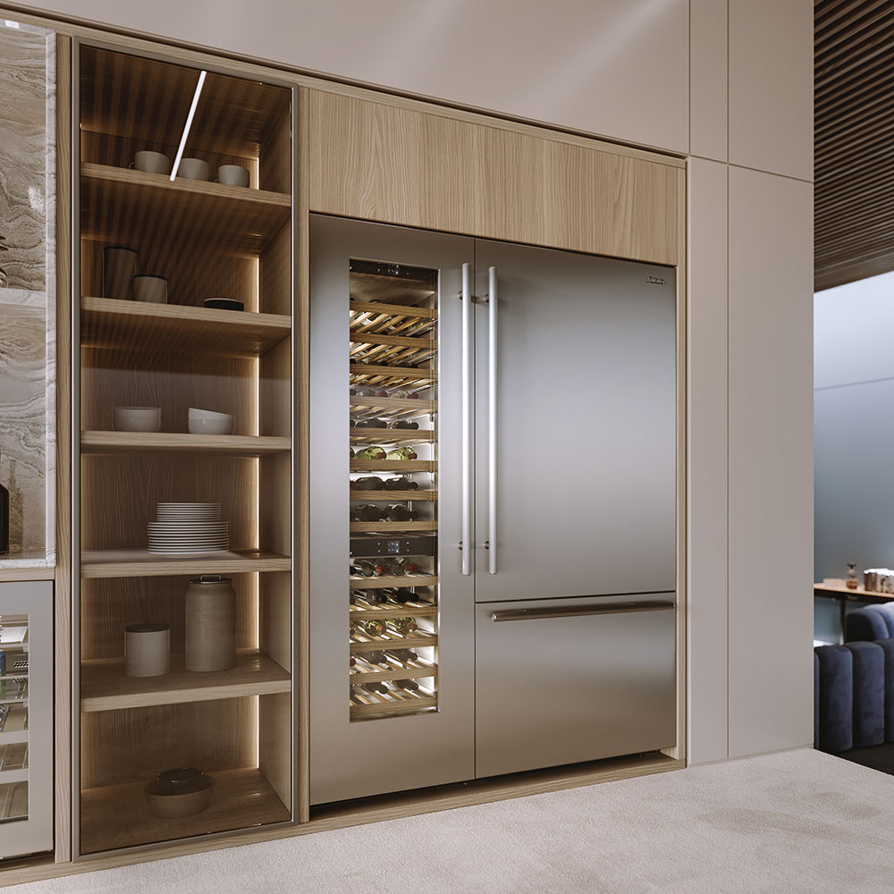 I modelli Fhiaba permettono di creare un centro di conservazione su misura per ogni cucina. E' possibile installare le apparecchiature singolarmente o creare combinazioni di frigoriferi / congelatori / cantine vini formate da due o più apparecchiature. In questo modo si possono creare le migliori soluzioni per la conservazione ottimale degli alimenti e dei vini.