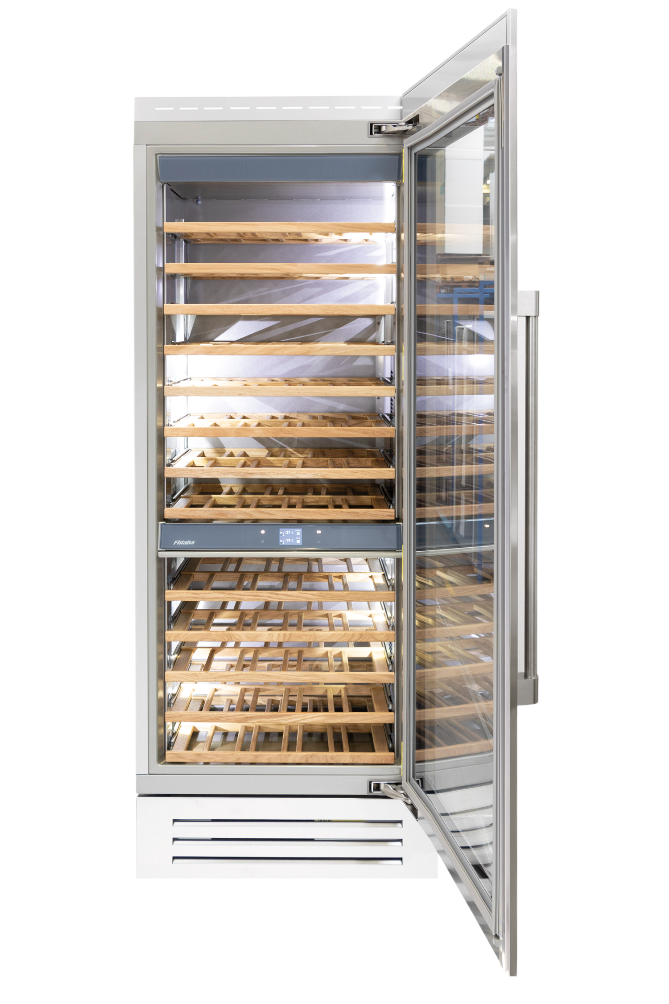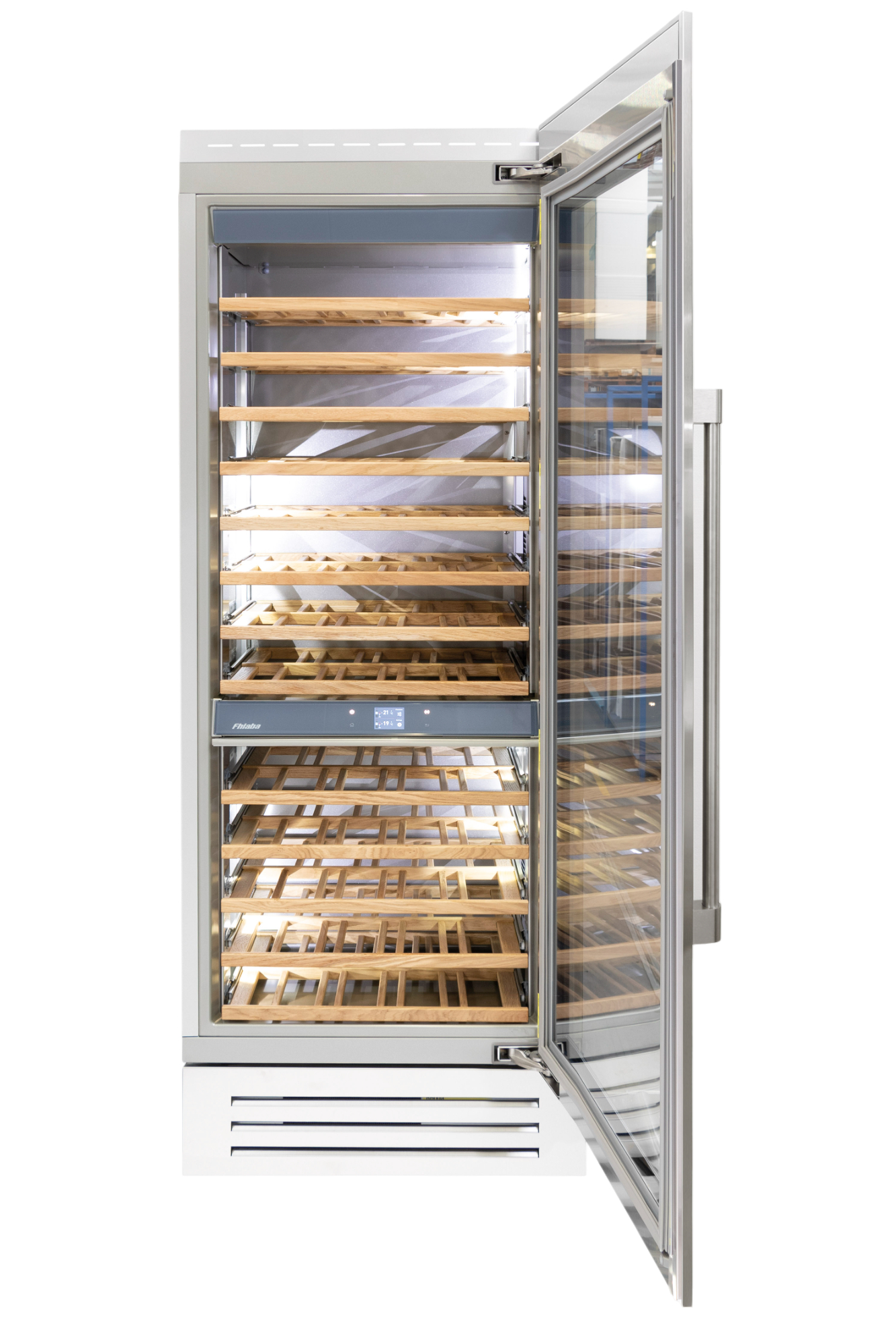 Le cantine vini Fhiaba sono dotate di pregiati ripiani in legno noce canaletto realizzati da artigiani friulani. Sfruttano ogni minimo spazio del vano e accolgono bottiglie con diverse dimensioni e sono completamente estraibili e dotati di chiusura soft per ridurre le vibrazioni.