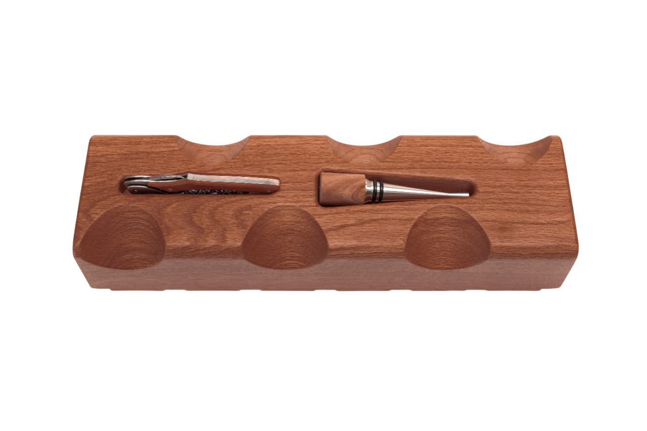 Supporto bottiglie in legno noce canaletto: 6 bottiglie da 750ml oppure 3 bottiglie magnum, con cavatappi e 1 tappo stopper prestige
