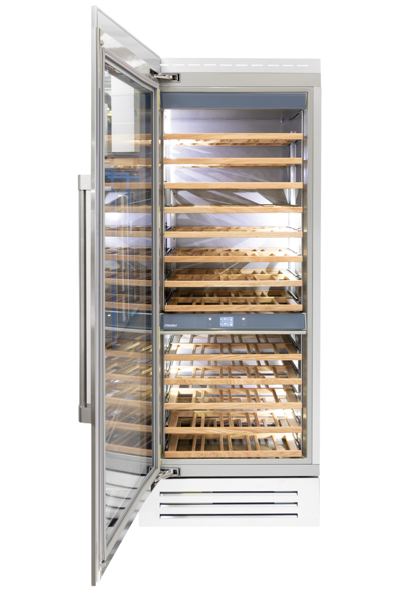 Le cantine vini Fhiaba sono dotate di pregiati ripiani in legno noce canaletto realizzati da artigiani friulani. Sfruttano ogni minimo spazio del vano e accolgono bottiglie con diverse dimensioni e sono completamente estraibili e dotati di chiusura soft per ridurre le vibrazioni.