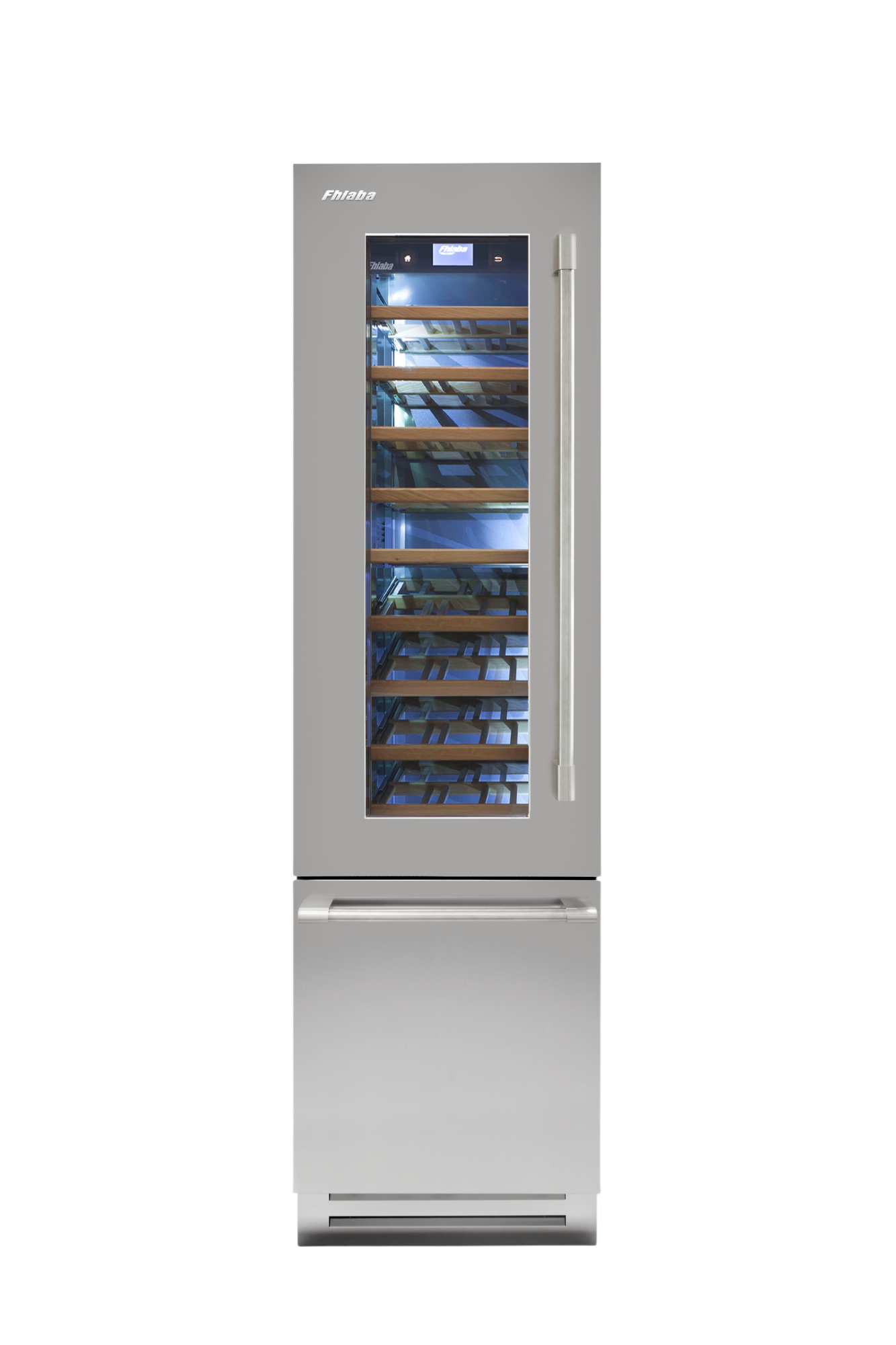 Le porte in vetro brunito Fhiaba hanno tre strati per filtrare i raggi UV e proteggere le bottiglie di vino dai epentini cambiamenti di temperatura e umidità dell'ambiente esterno.