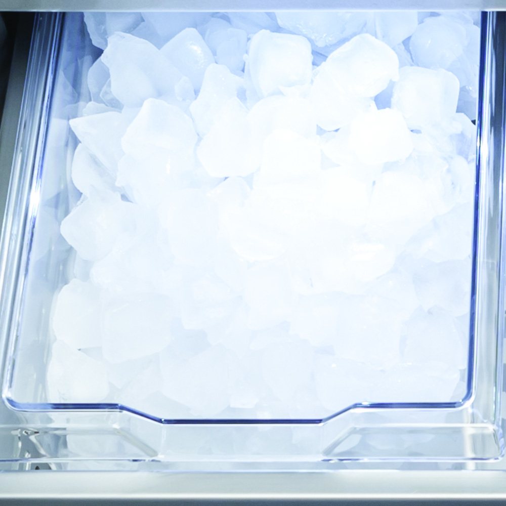 L'ice maker automatico di Fhiaba produce fino 1,5 kg di ghiaccio al giorno nella dimensione e nella quantità desiderata. Il ghiaccio erogato è trasparente e privo di sapore grazie all'azione di purificazione del filtro interno che elimina le impurità presenti nell'acqua