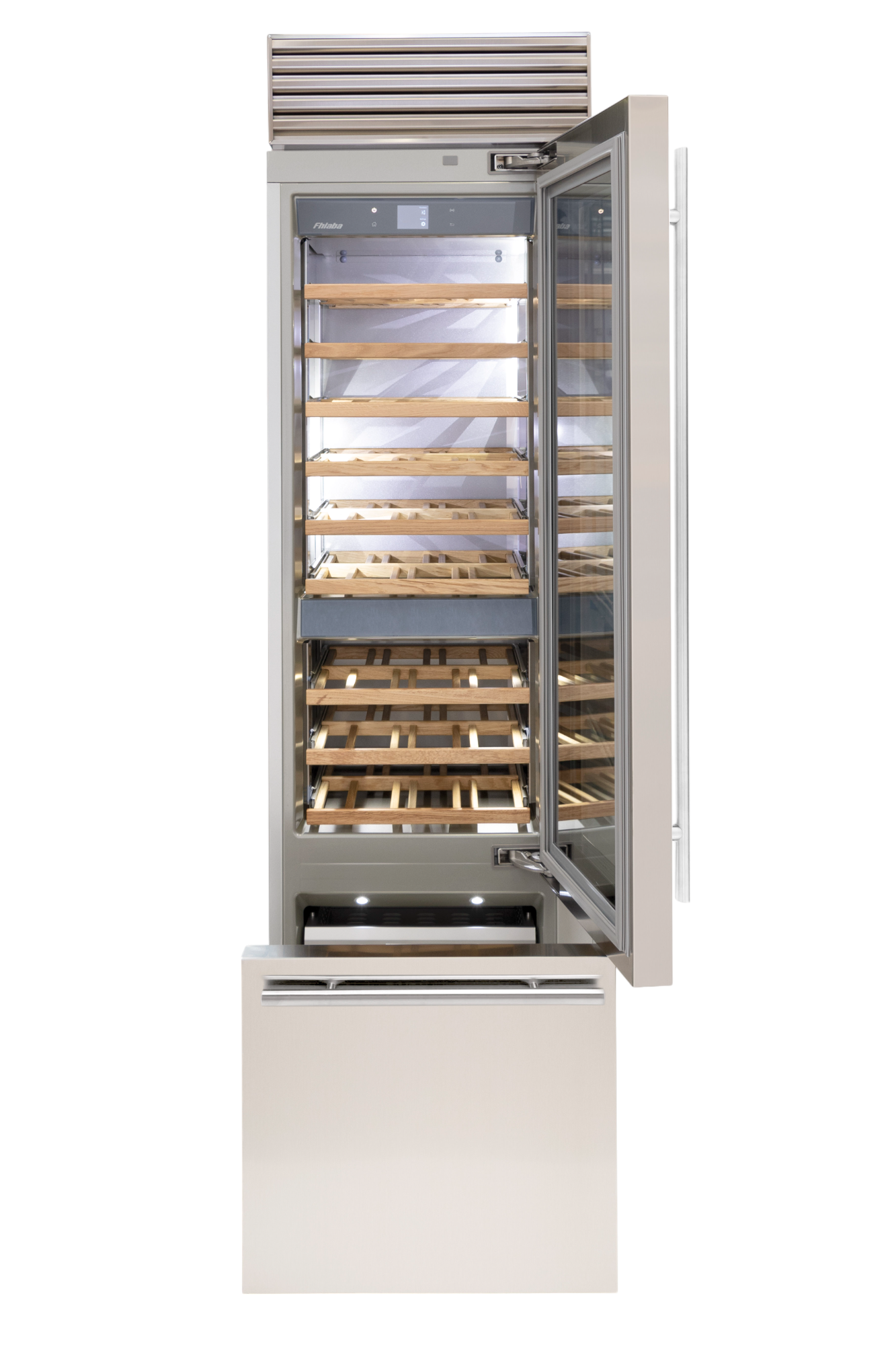 Le cantine vini Fhiaba sono dotate di pregiati ripiani in legno noce canaletto realizzati da artigiani friulani. Sfruttano ogni minimo spazio del vano e accolgono bottiglie con diverse dimensioni e sono completamente estraibili e dotati di chiusura soft per ridurre le vibrazioni.