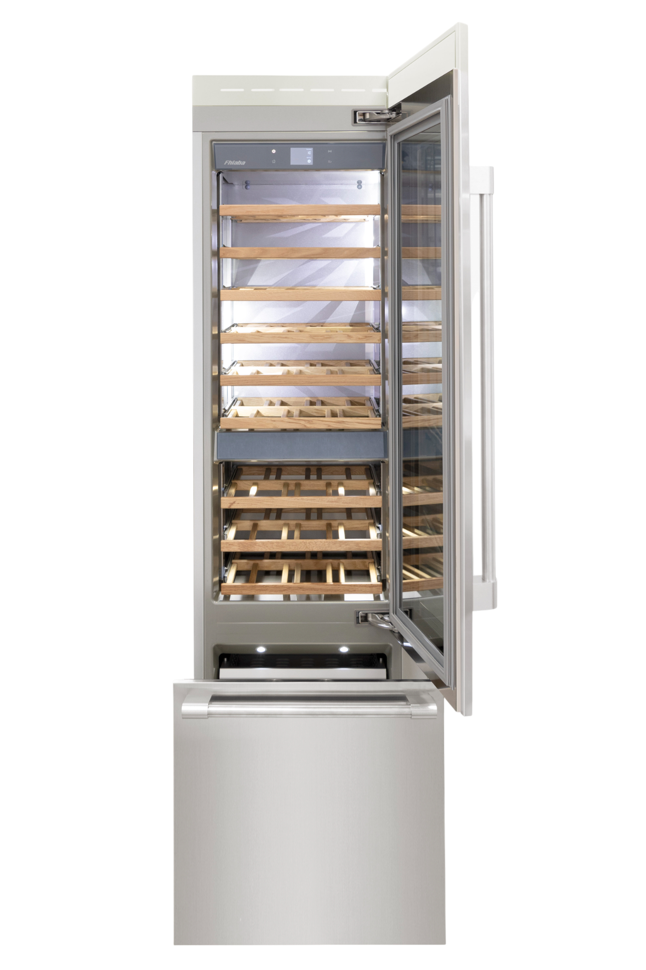 Le cantine vini Fhiaba sono dotate di pregiati ripiani in legno noce canaletto realizzati da artigiani friulani. Sfruttano ogni minimo spazio del vano e accolgono bottiglie con diverse dimensioni e sono completamente estraibili e dotati di chiusura soft per ridurre le vibrazioni.