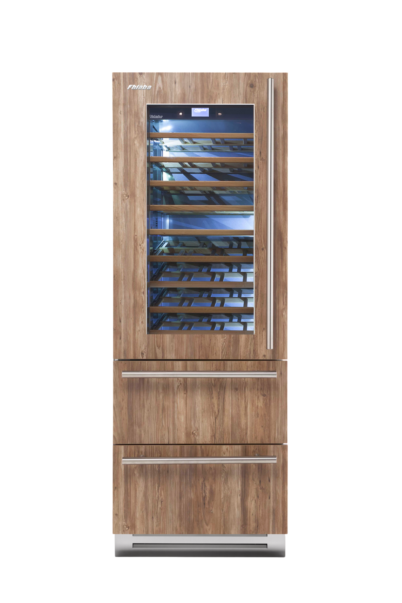 The doors of the Wine Cellar models are darkened with tinted glass to protect bottles from the damaging effects of light. Fhiaba wine cellars are the only ones with triple-layer bronze glass doors to ensure maximum protection from UV rays and from sudden changes in the external room temperature.
